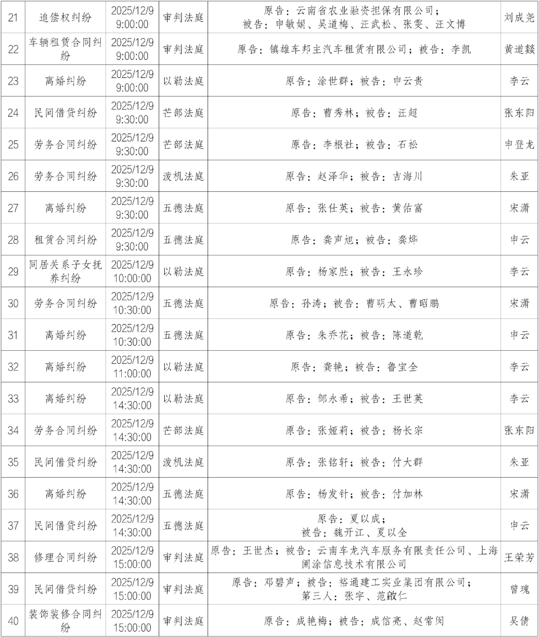 镇雄县人民法院开庭排期公告(12月8日-12月12日)!