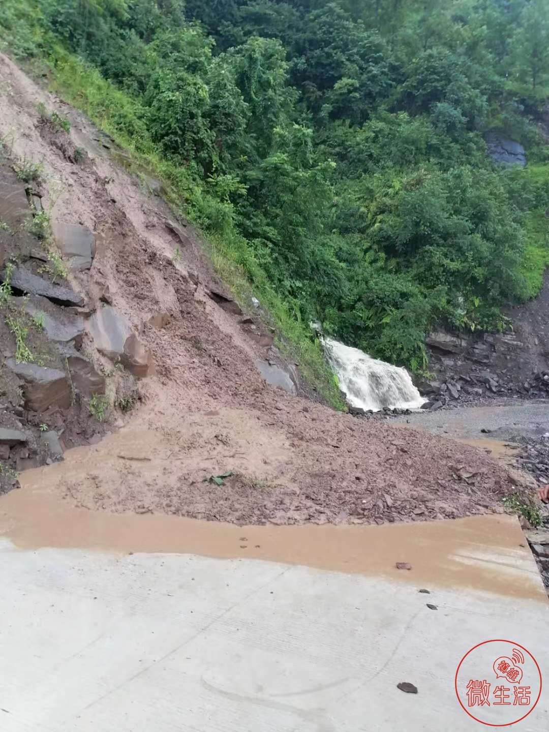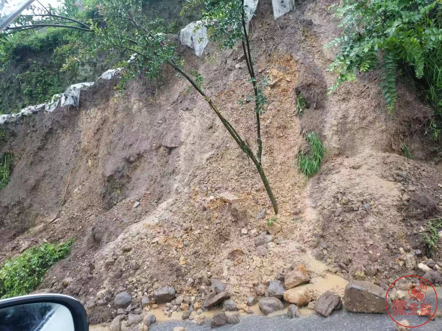 受暴雨影响,坪上镇多地发生泥石流,山体滑坡严重。