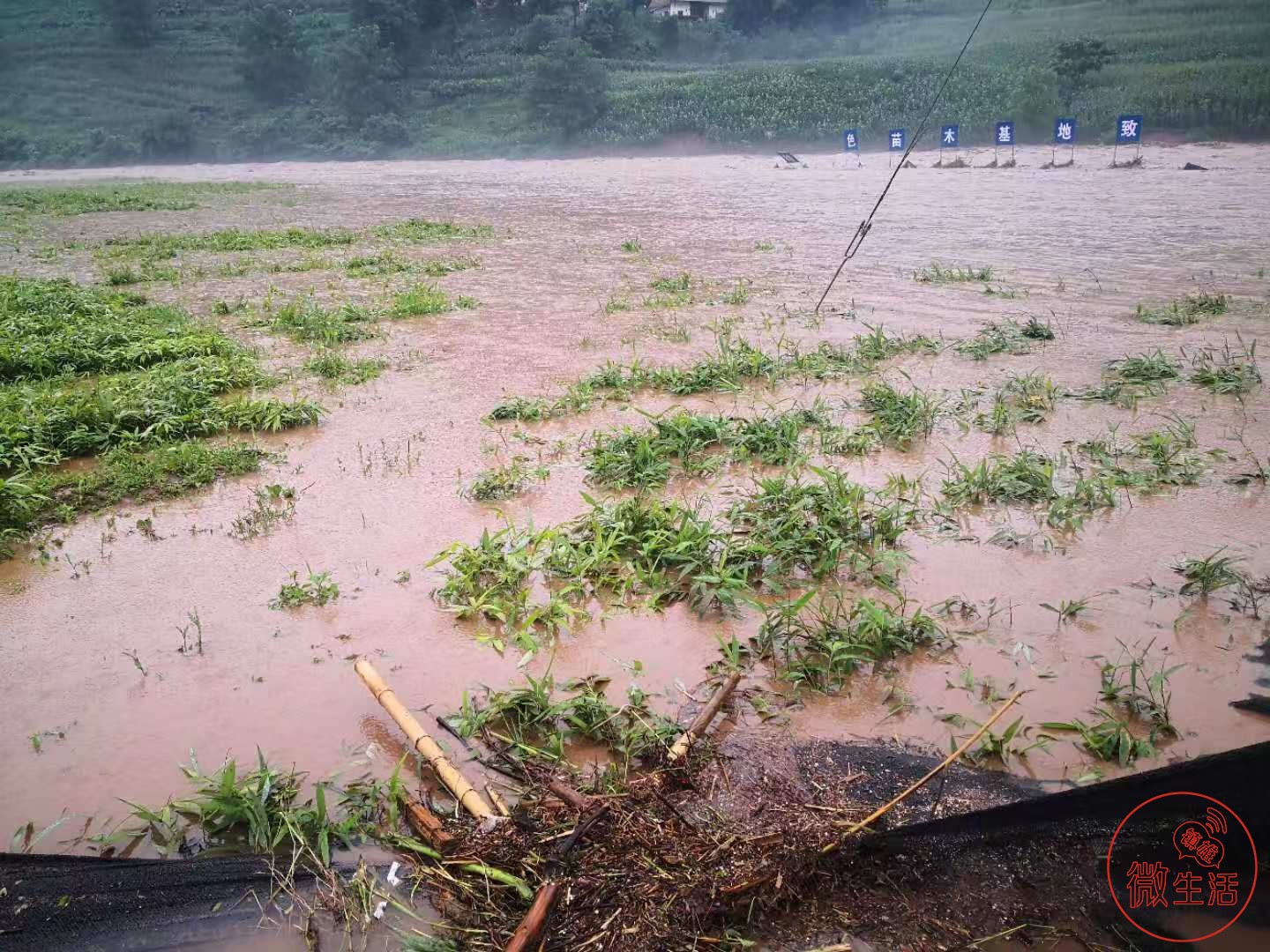 法地村车子坝苗圃育苗基地,昔日繁茂的苗圃已被洪水淹没。
