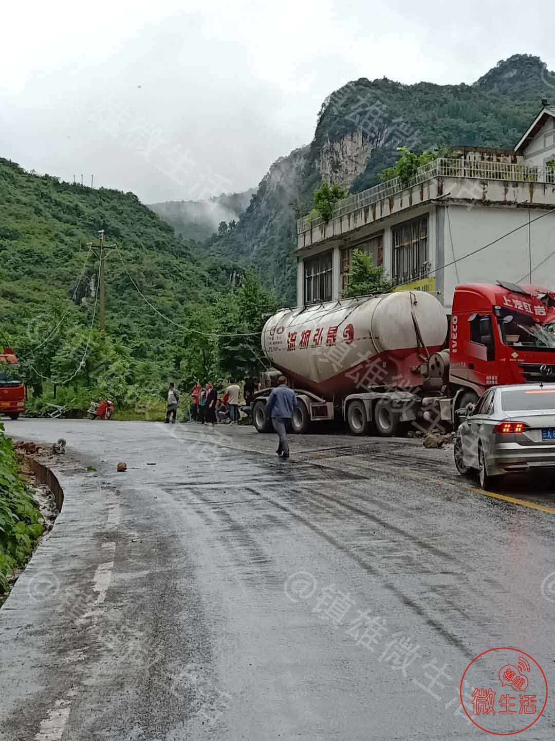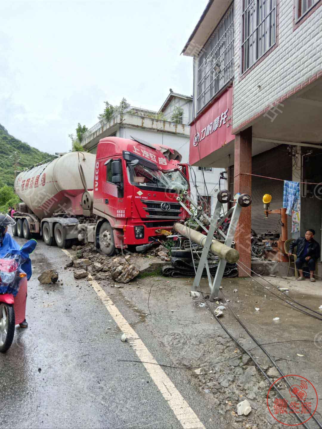 突发!镇雄罗坎油罐车撞断电线杆,目前已致多个地方停电!
