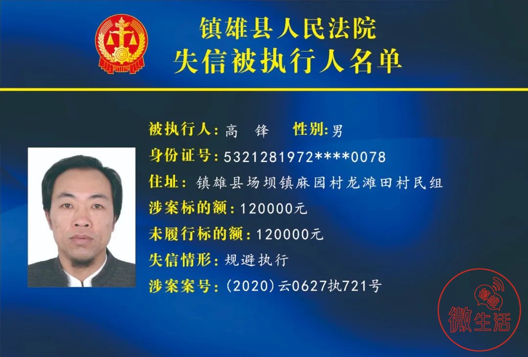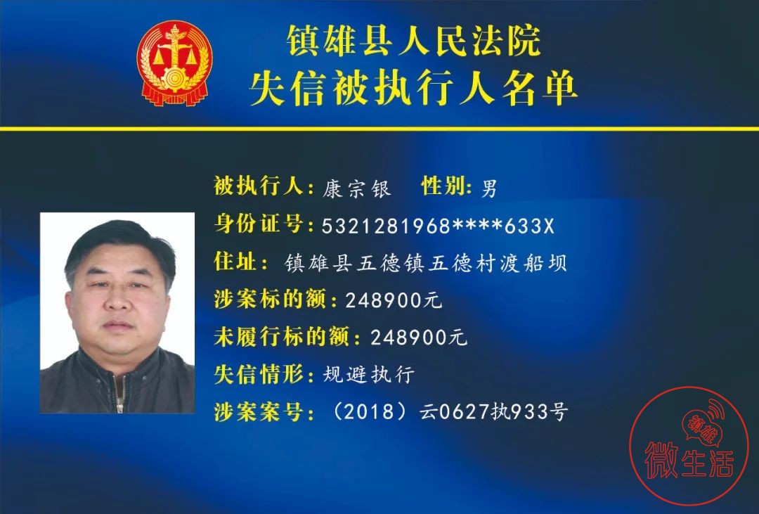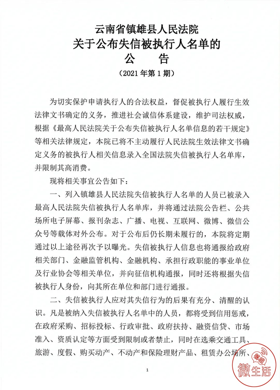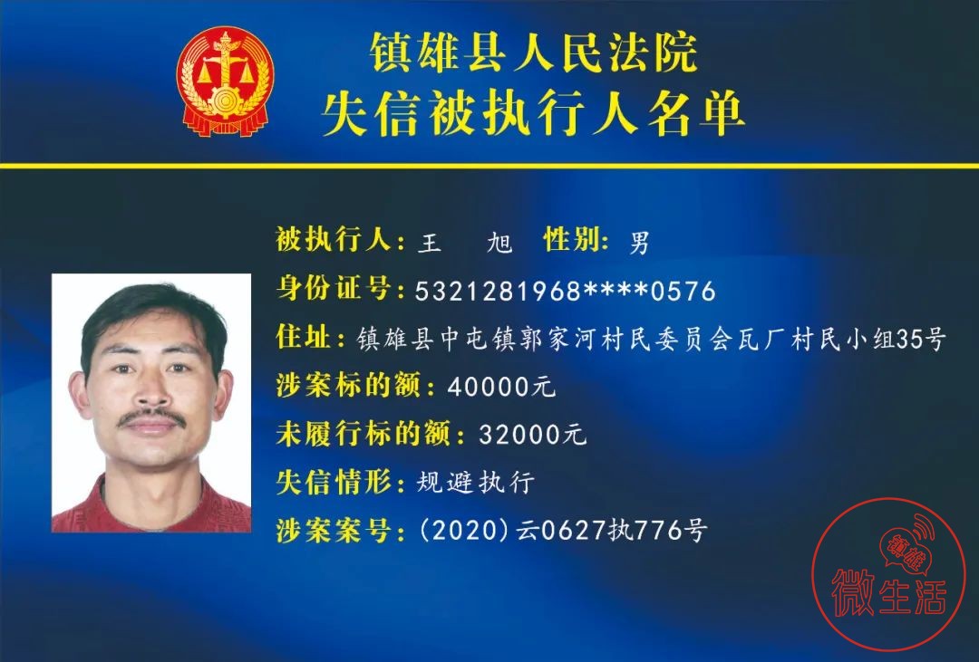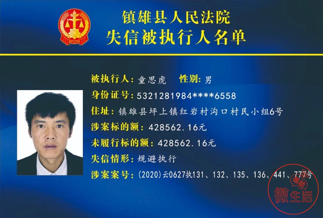 镇雄2021年第一批“老赖”被法院实名曝光,有人最高欠款800多万!