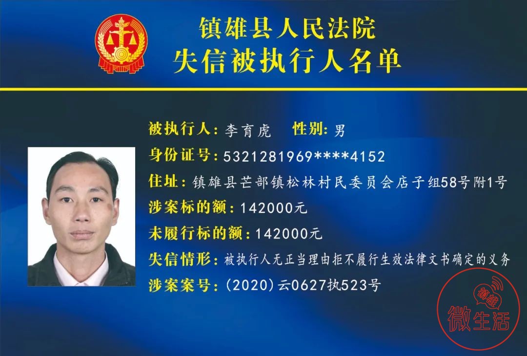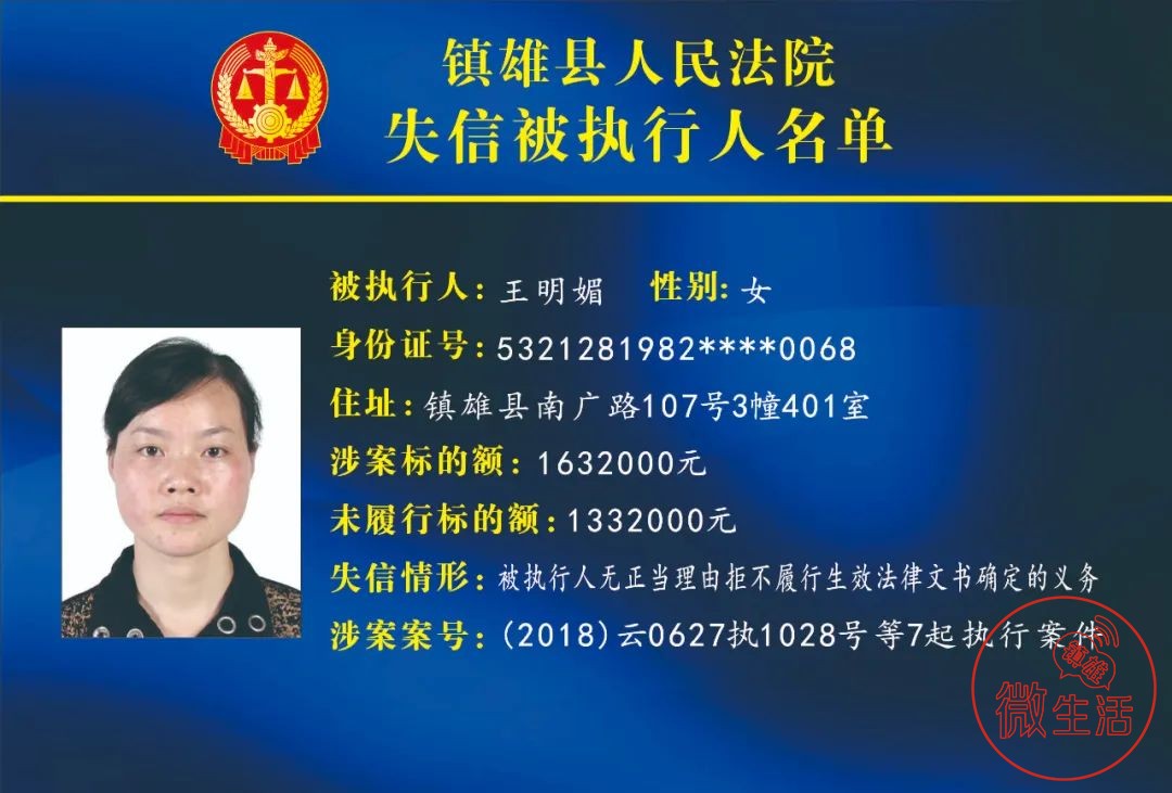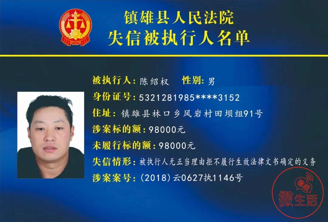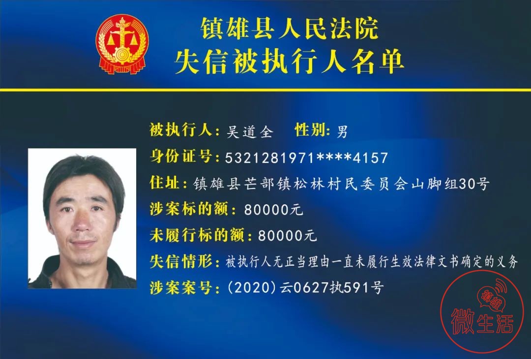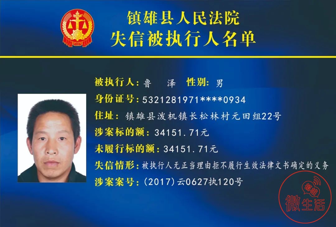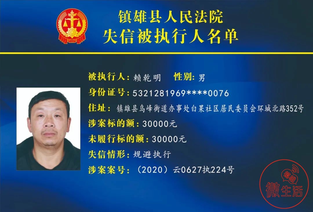 镇雄2021年第一批“老赖”被法院实名曝光,有人最高欠款800多万!
