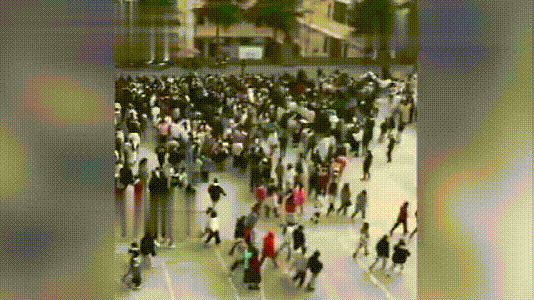 从监控画面中可以看到,地震发生后,当地一中学3800名学生5分钟内成功疏散到操场避难。