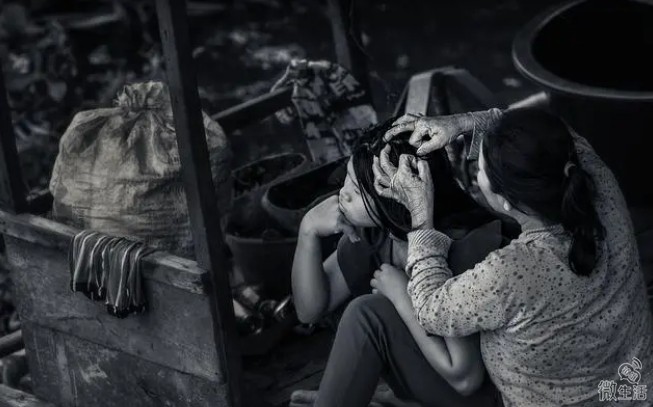 妹妹一听野人婆说完,翻起衣服到处找虱子,找到就丢火里烧了。