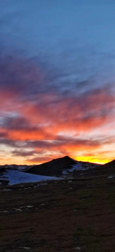不远处巍峨的高山上凝结了一片白茫茫的雪被