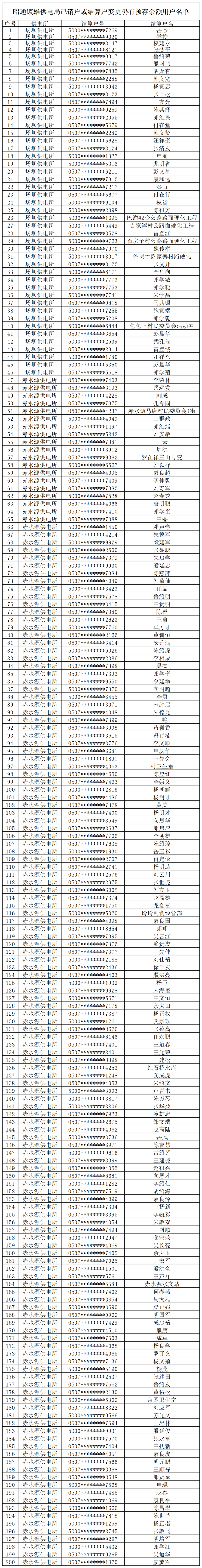昭通镇雄供电局供电辖区内已销户或结算户发生变更但仍有预存电费余额的客户(详见附件)。