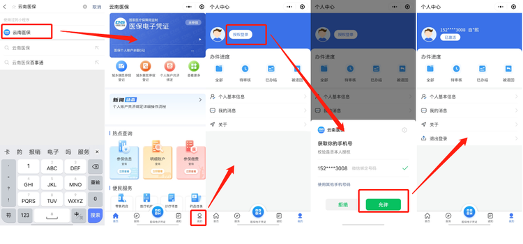 第一步:授权登录。打开微信/支付宝,搜索“云南医保”->我的->授权登录->授权登录成功。