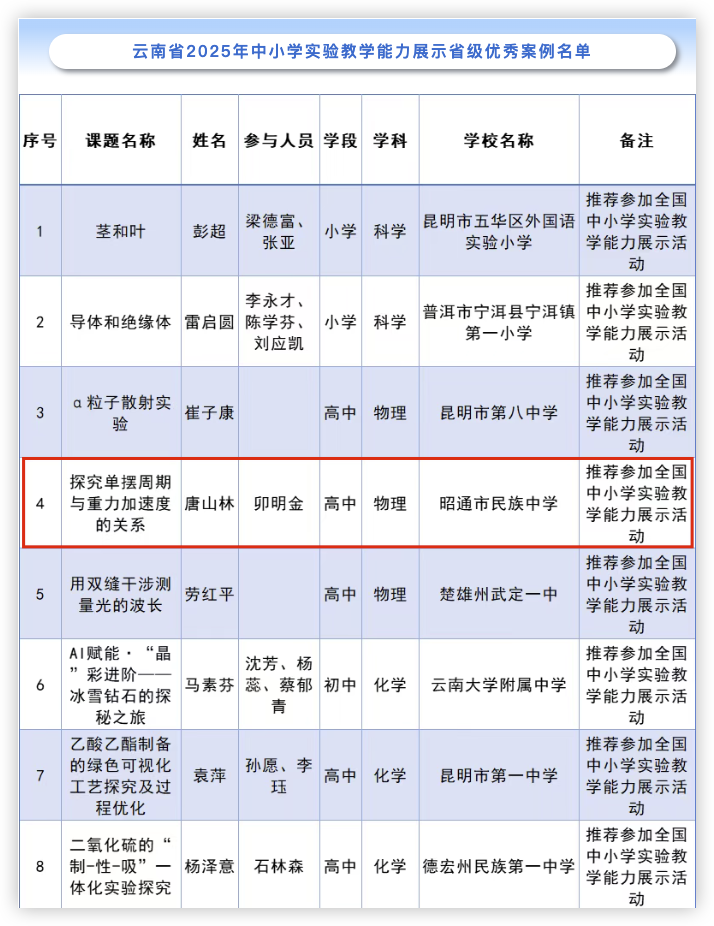 昭通5所学校拟获省级实验教学优秀案例!
