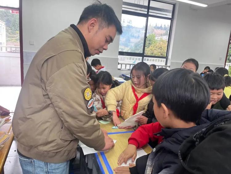 下课后,他是孩子们的“大哥哥”——教他们折能飞得更远的纸飞机,还和他们比赛谁的飞机飞得远;看到学生玩沙包缺人,他总会笑着成为他们的“队友”;有学生感冒了,他会把自己的保温杯递给孩子并叮嘱道:“喝点热水,鼻子就通了。”