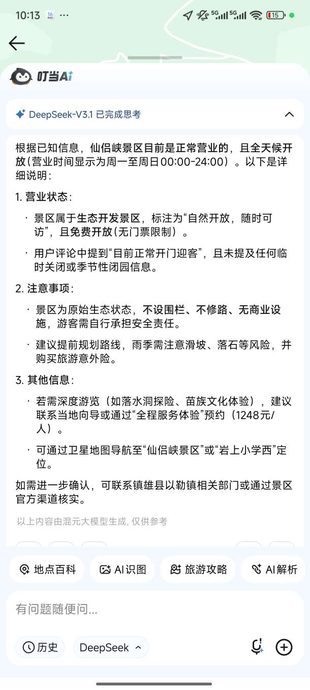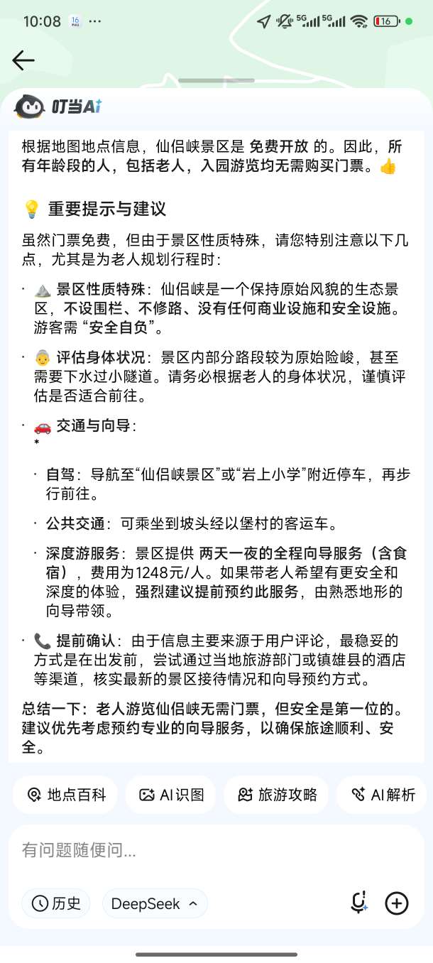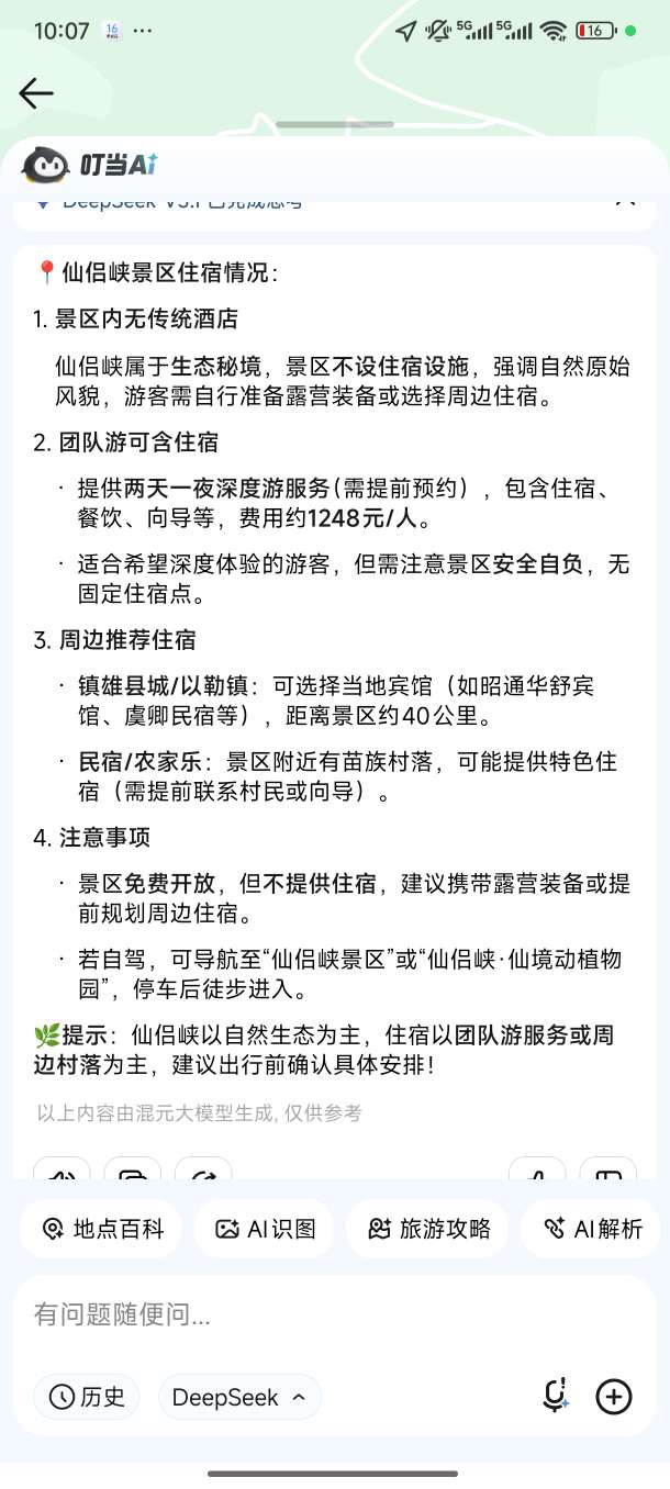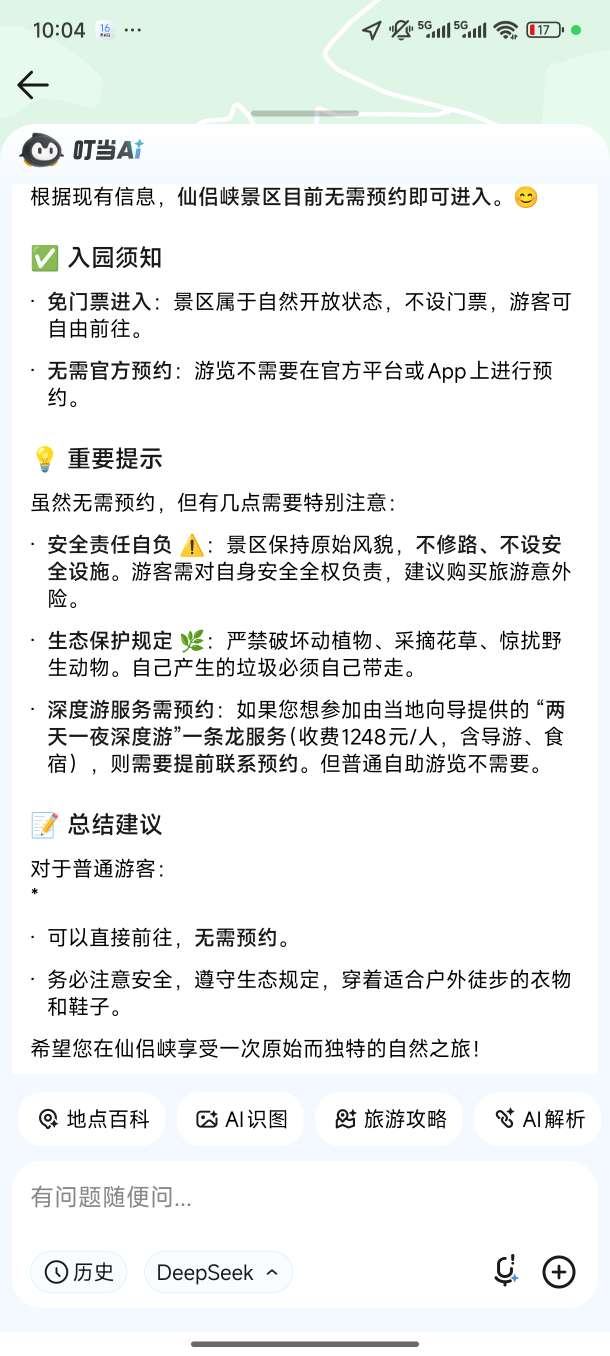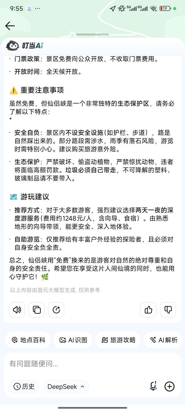 两种游览模式,仙侣峡提供两种游览体验方式,满足不同游客需求。全程服务体验(推荐):享受两天一夜深度游,一条龙向导带游山玩水,包含吃喝玩乐住全方位接待,收费1248元/人。需提前预约,由熟悉地形的向导带领,能够更深入、更安全地探索秘境。