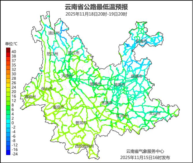 其中,S11曲靖段、S207曲靖段、S305曲靖段、G85曲靖段、G213曲靖段、G326曲靖段、G85昭通段、G213昭通段、G247昭通段、G352昭通段、G356昭通段、G7611昭通段、S229迪庆段、S317迪庆段、G214迪庆段、G0613迪庆段将受到强降温影响,G213西双版纳段、G219红河段、G326红河段、G8011红河段、G219文山段、G246文山段、G323文山段将受到强降水的影响。请公众注意出行安全和防寒保暖。