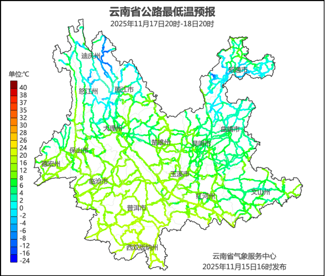 11月17日20时至11月18日20时受强降温影响的路段为: