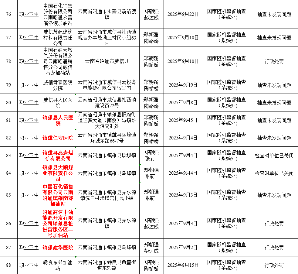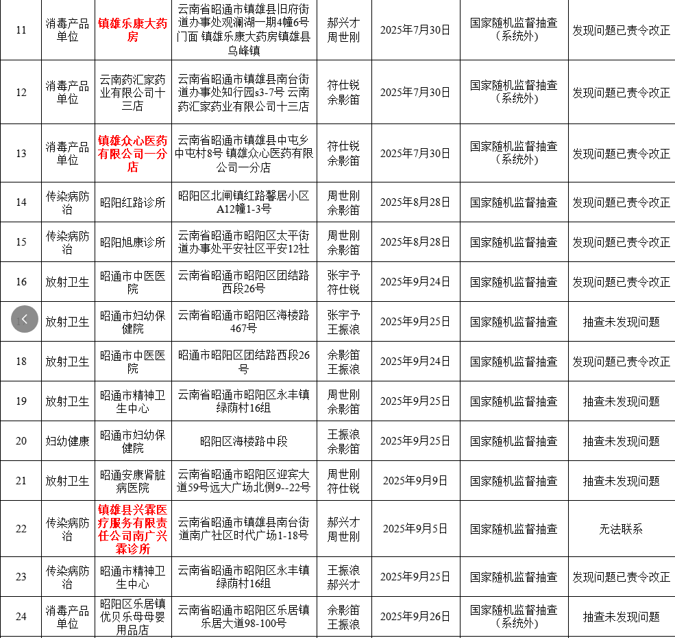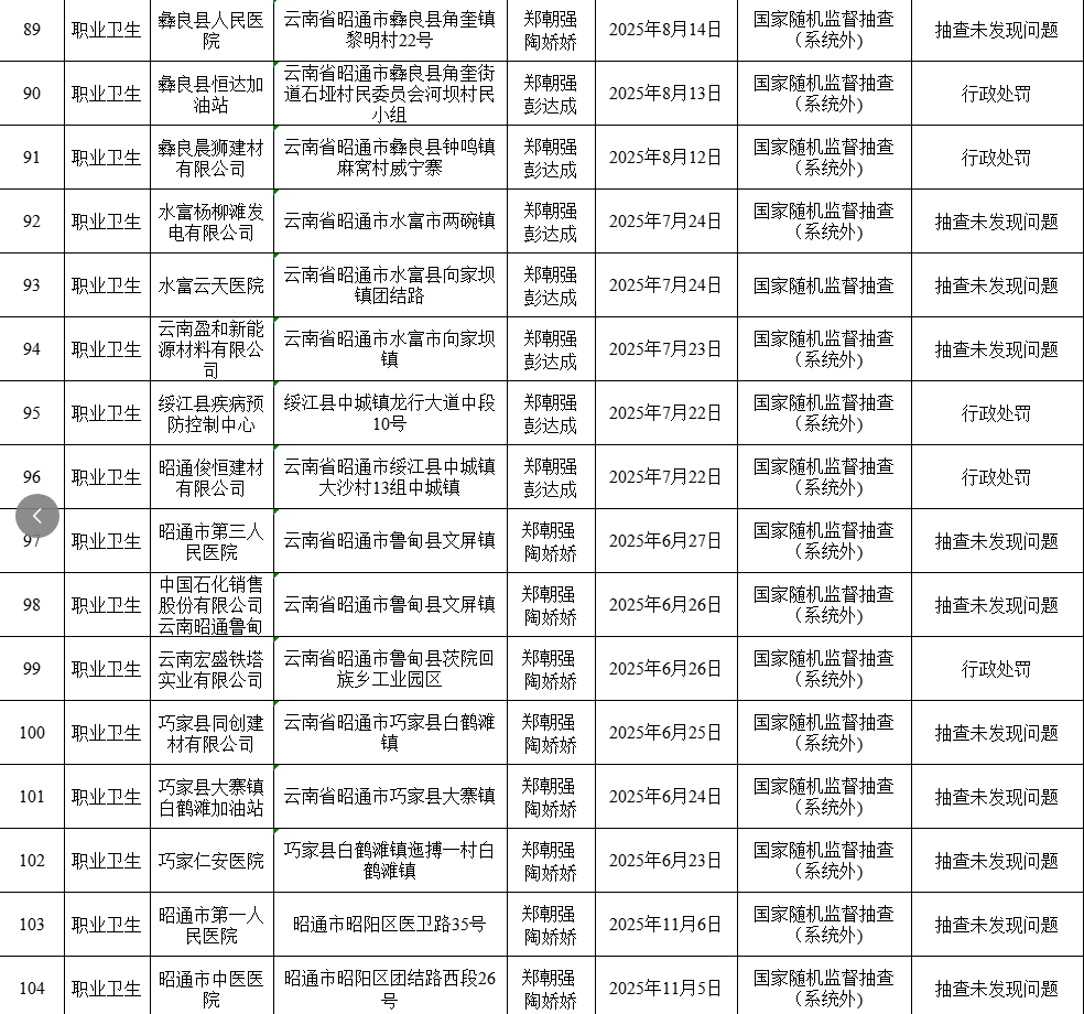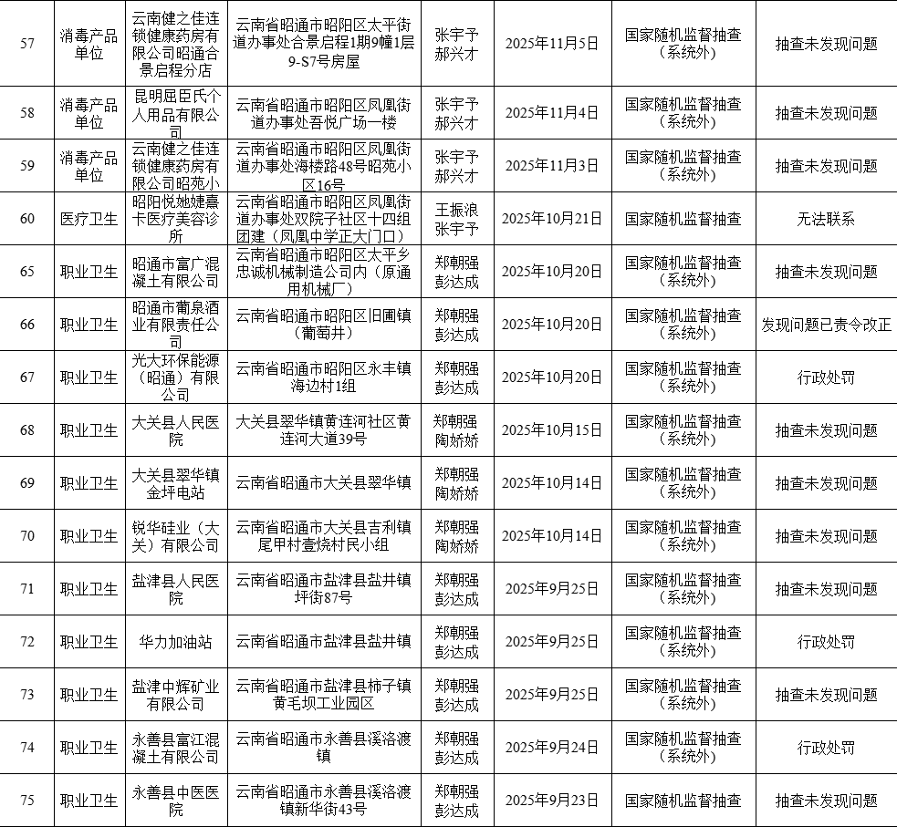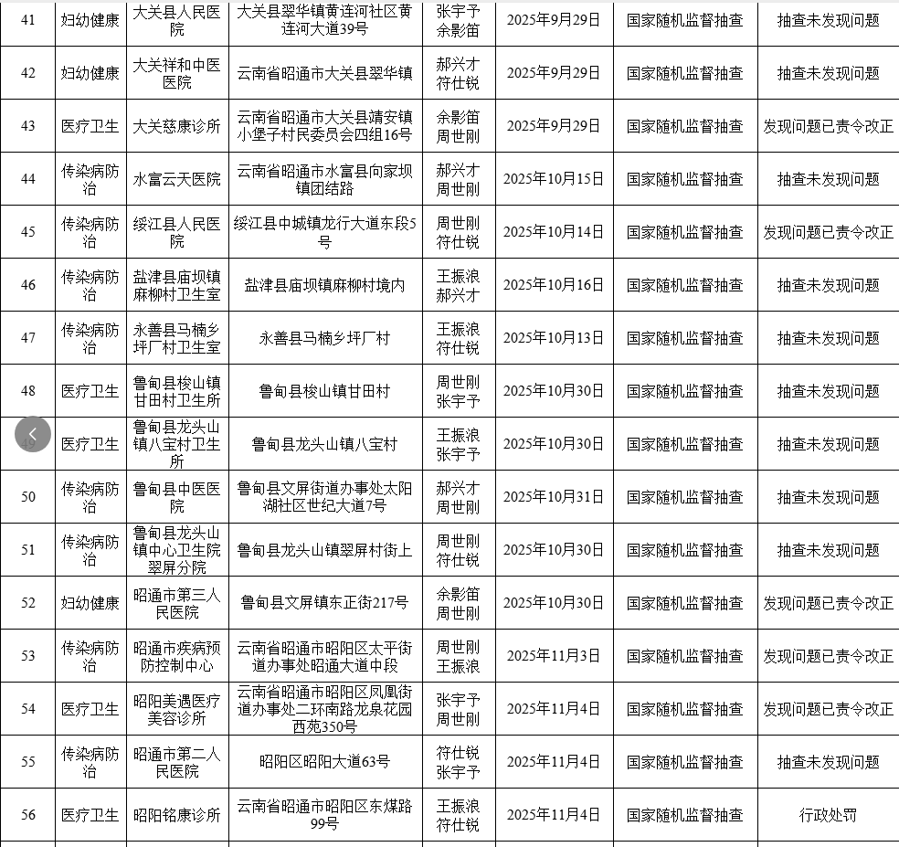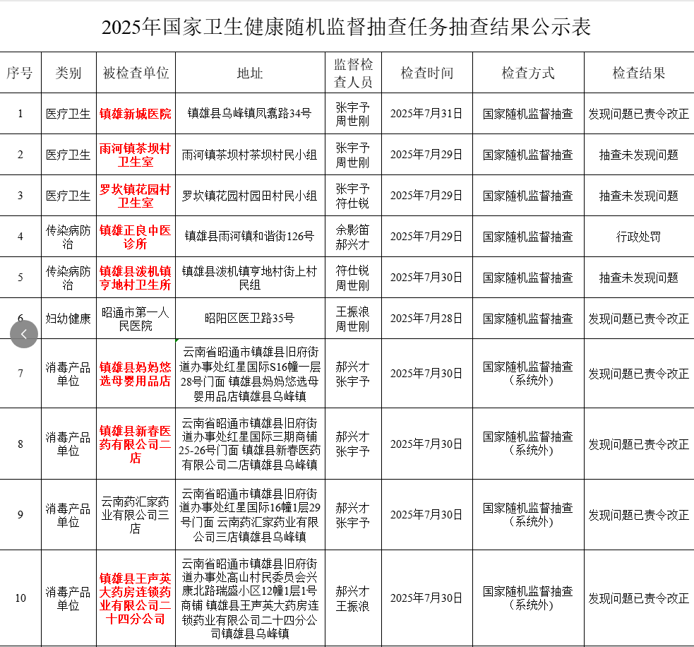 2025年国家卫生健康随机监督抽查任务抽查结果公示表