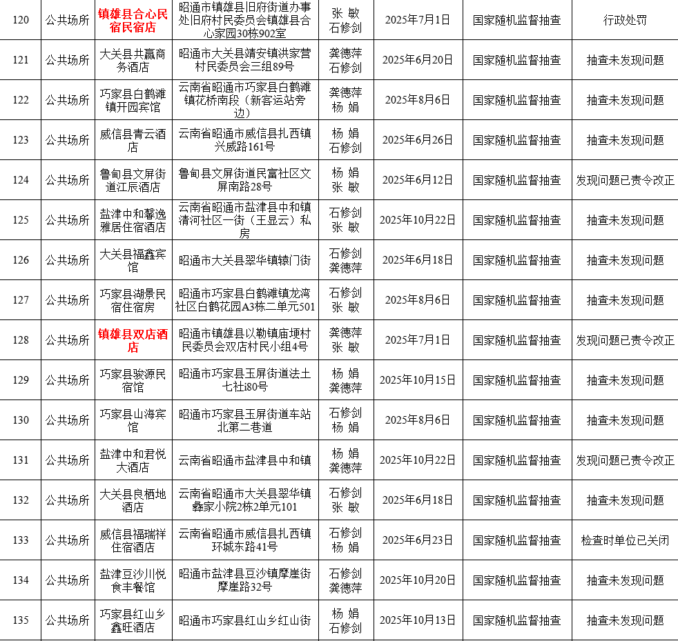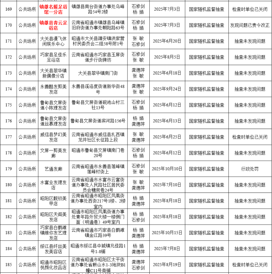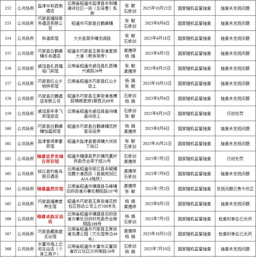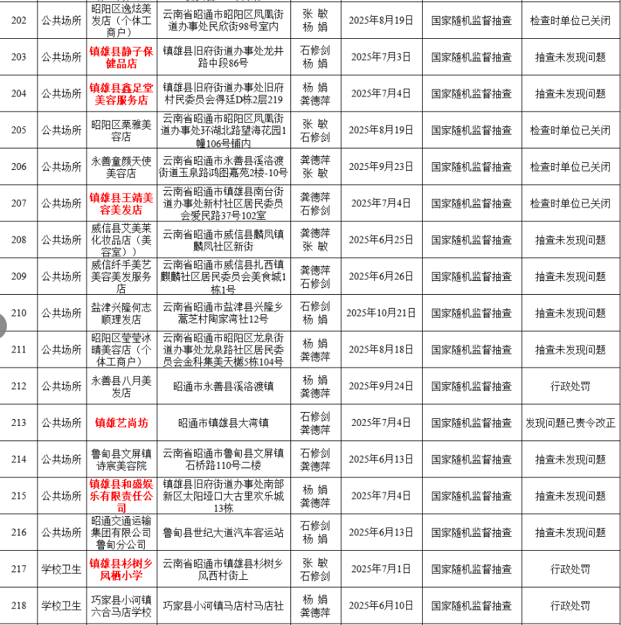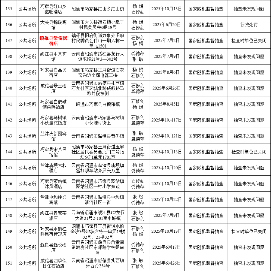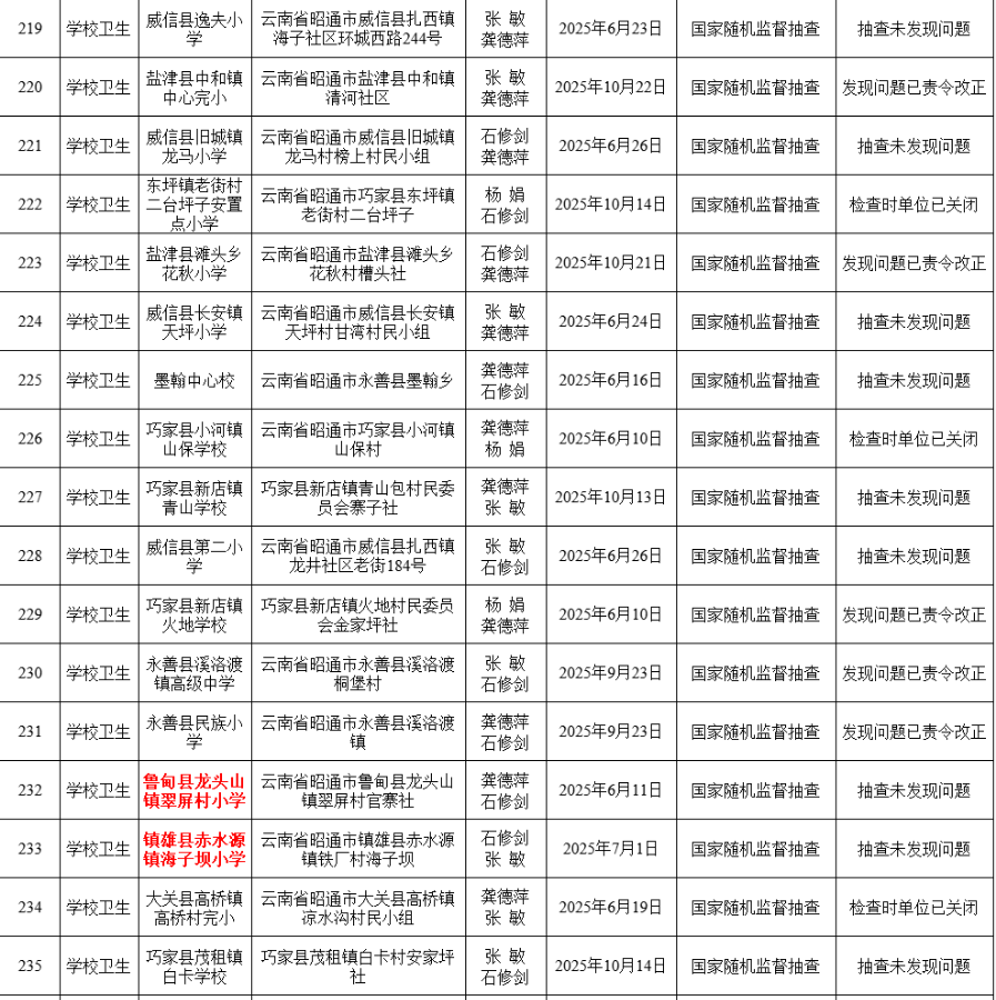 2025年国家卫生健康随机监督抽查任务抽查结果公示表