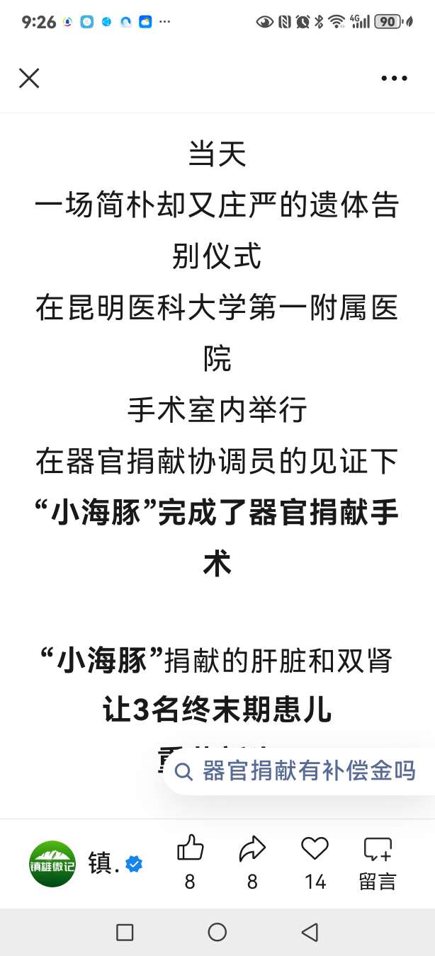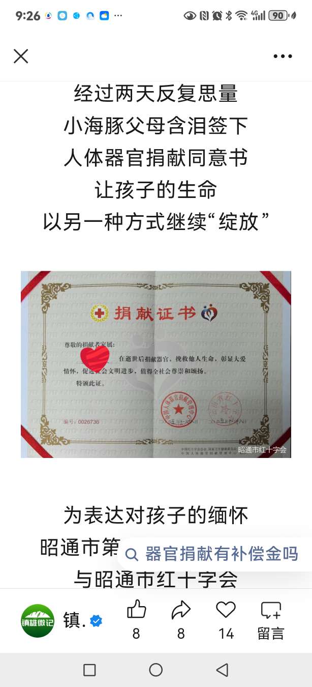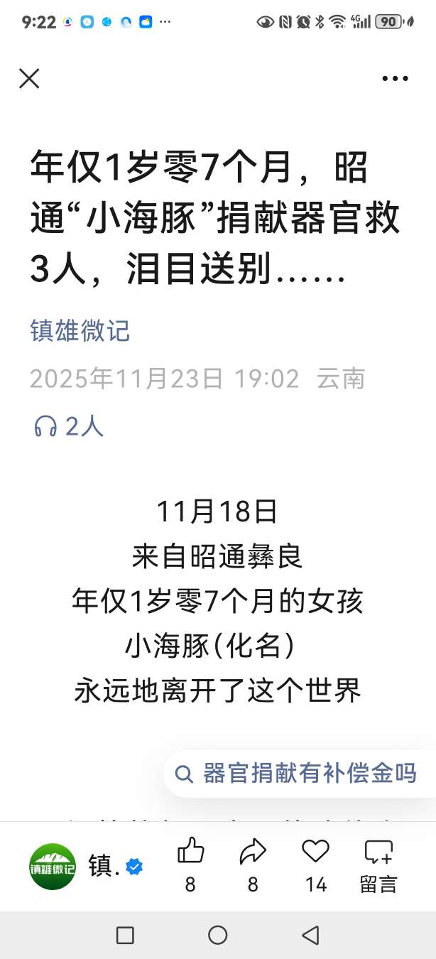 《有感于昭通年仅1岁零7个月“小海豚”捐献器官救3人》愿“小海豚”一路走好!