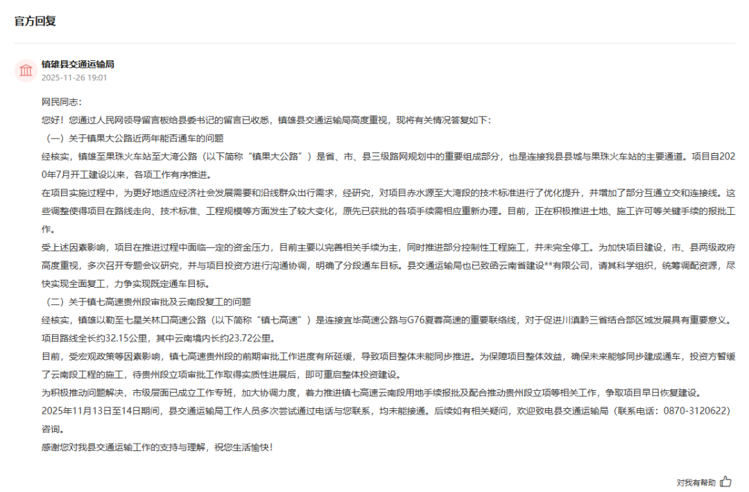 镇果高速何时通车、镇七高速何时复工?官方最新回复→