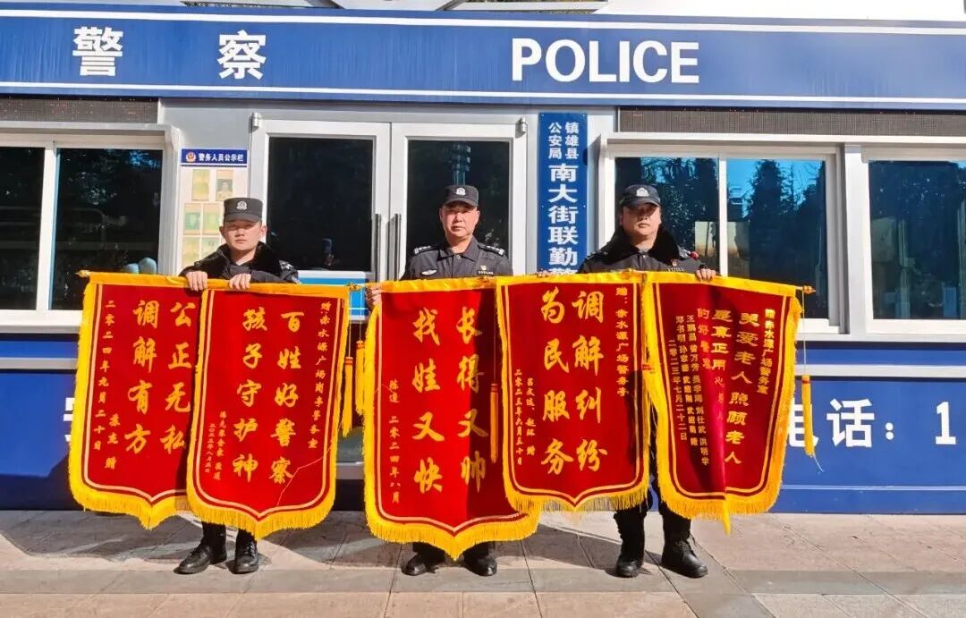警务室的墙上,20多面锦旗讲述着常开富和同事们的暖心故事。其中,“长得又帅,找娃又快”这面锦旗尤为引人注目。