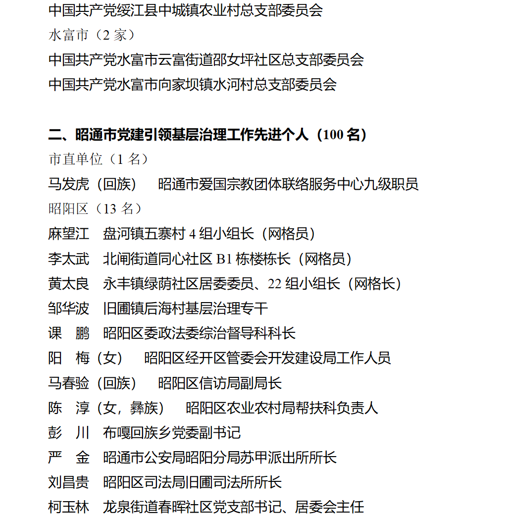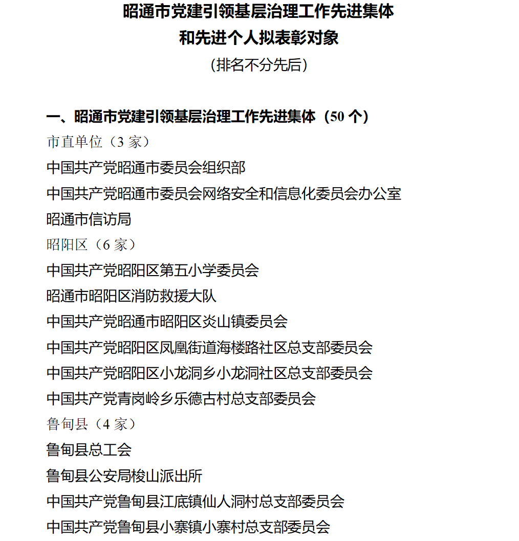 关于昭通市党建引领基层治理工作先进集体和先进个人拟表彰对象的公示!