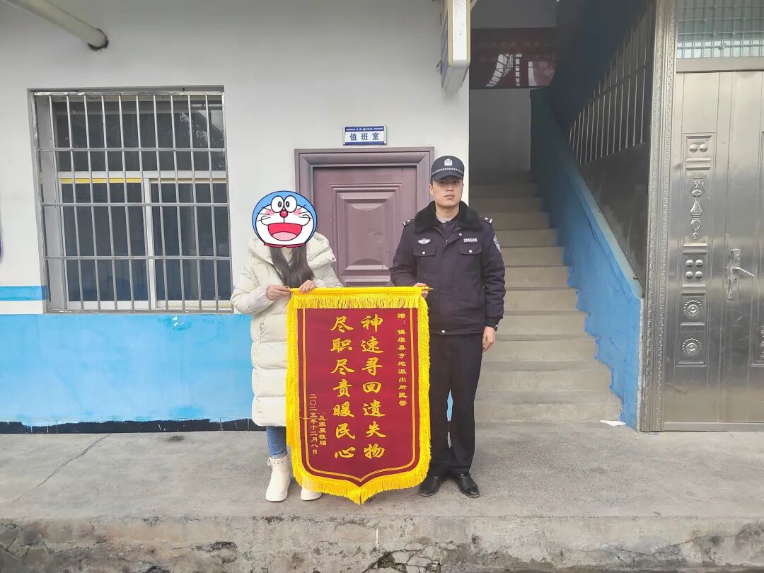 “神速寻回遗失物,尽职尽责暖民心”的锦旗