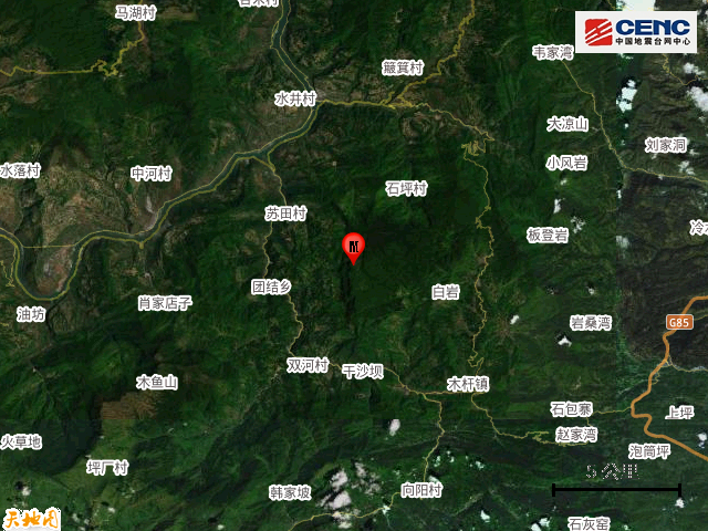 附近村镇:本次地震周边5公里内的村庄有东胜村、道角塆、石坪、向阳村、联合村、岩口、二坪、存钱岩、麻柳湾、丁家坳,20公里内的乡镇有团结乡、木杆镇、桧溪镇、细沙乡。