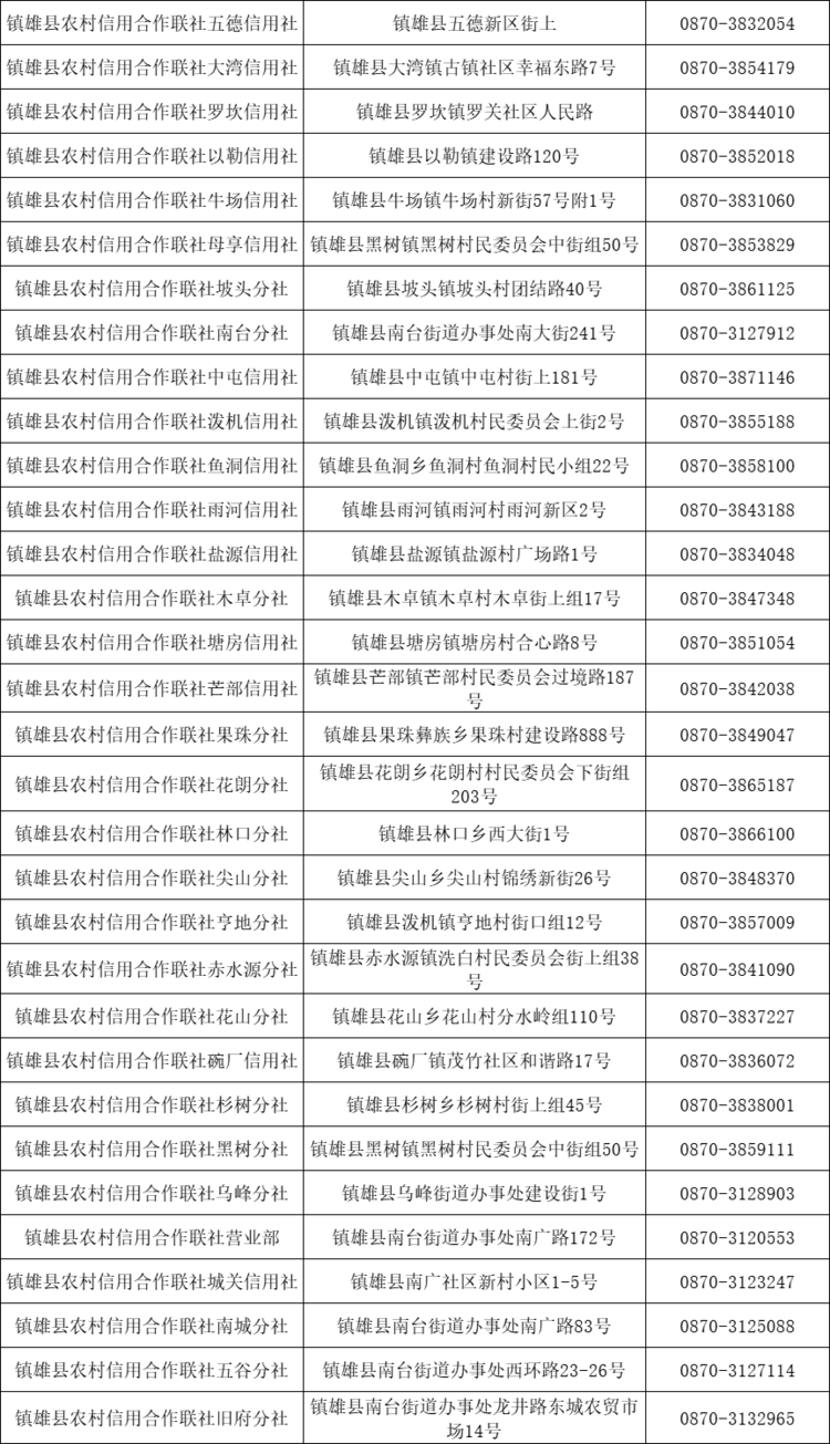附件4:镇雄县金融社保卡农商行(农信社)即时制卡网点