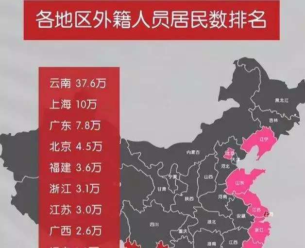 几年前,有关部门曾做过一个《各地区外籍人员居民数排名》,出乎意料的是,云南省居然排名第一,而不是以国际化闻名的上海。根据统计,云南的外籍居民数量已超过37万,是上海的三倍多,占全国外籍人口的40%以上。这个比例非常惊人,甚至有网友幽默地表示,云南似乎快要被外国人占领了。