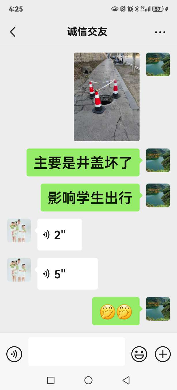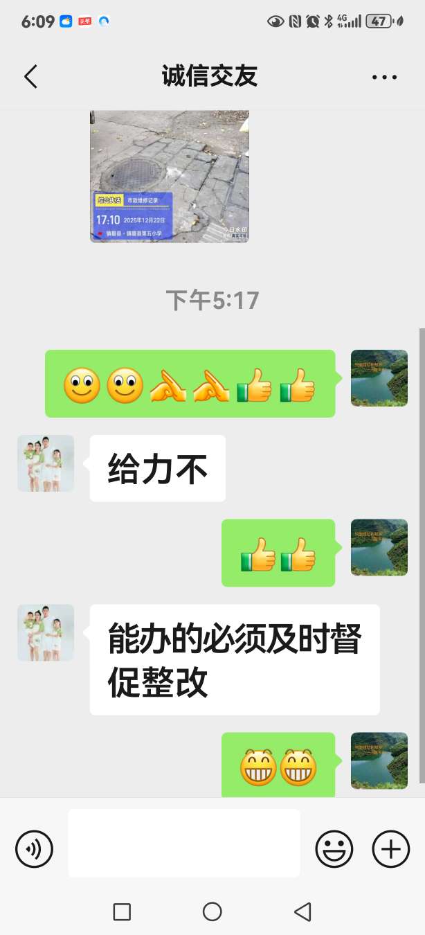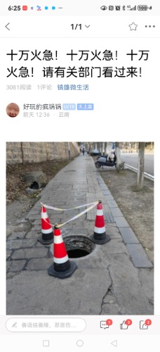 前天早上(具体时间不详,峰哥发现时已是中午十二点多),在公租房片区文武三小后门处,有一污水井盖严重破损(如图),疑是被车辆压坏。这里是五小的孩子们上下学的必经之路,为了孩子们的出行安全,峰哥一方面在微生活发帖反馈,请有关部门尽快派人前来修复;与此同时,也向综合行政执法局(以前叫城管局)的“张队(不具名)”告知了这件事;还有峰哥后来才知道的是:第五小学沈校长(女)得知(如何得知不详)情况后,立刻安排学校分管安全的副校长对接城管部门相关人员,并通知门卫人员用三个锥筒将破损井盖围起来(如图)以警示过往行人,等待有关人员过来处理。让人高兴的是,当天下午5:10,峰哥就收到了“张队”发来的消息,告知破损井盖也已经修复,而此时距五小下午放学时间还有十分钟。峰哥收到消息后,立刻报告给了沈校长和学校分管领导,于是皆大欢喜,因为学生马上放学,可以安全通行了。而沈校长得知井盖已经修复后说的一句话更是让峰哥感动:“学生能够平安回家,我也就放心了!”通过这件事,我们除了知道沈校长确实是一个好校长,还应该知道那“张队”也确实是个好“张队”,而“张队”所代表的是“综合行政执法局”,我们必须要为“综合行政执法局”有关部门的快速反应点个赞,他们真的是太“给力”了!