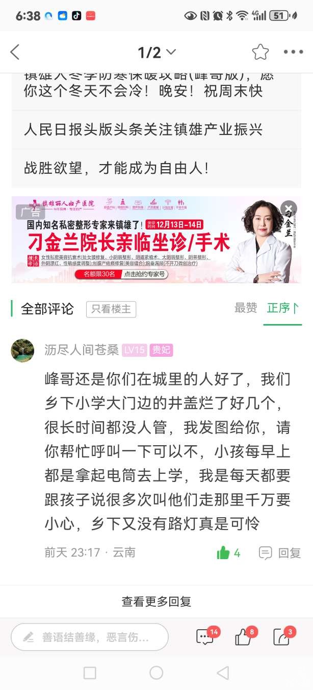 雄友“沥尽人间苍桑”说,还是呼叫峰哥效果快,都在整了,尽我们的所能大家都要爱护好!谢谢峰哥[憨笑]