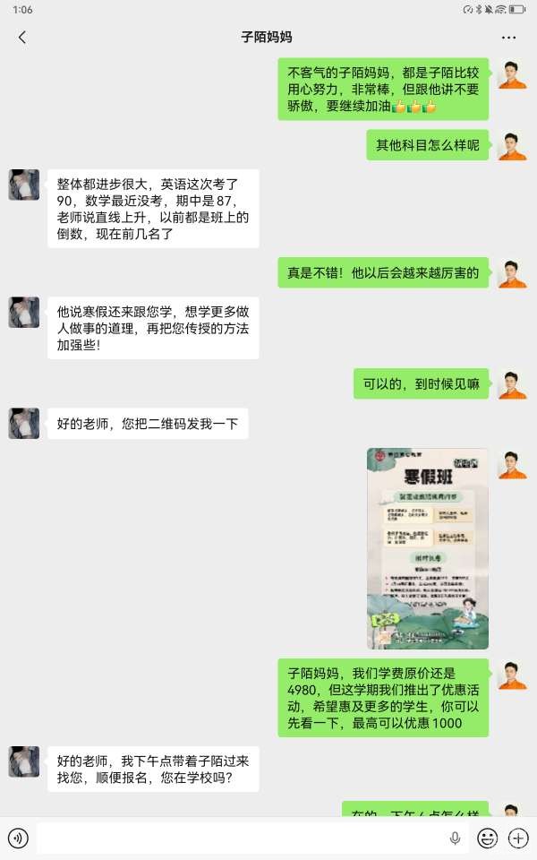 看到学生的蜕变, 心里面有说不出的成就感! 这位学生从原来的倒数, 到现在班上前几名 最根本的原因就是他的, 习惯和学习能力得到了提升