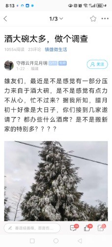 近期,镇雄的酒大碗确实是很多的,不管别人,光说自己,每逢有期呈的日子一天就是好几家,正应了我们大镇雄的一句俗话:三家人请吃酒一一搞不赢!偶尔,甚至是超过了三家。也许,别人的怕会更多些。当然了,这些酒大碗,该吃的还是必须得去。关于酒大碗,有网友把它归为两类,一类是正办,比如婚丧(即红白事);一类为歪办,比如什么什么,反正是除了正办以外的,由于名目繁多,不一一列举。于是,每天都有网友在社区发帖,或吐槽,或诉苦,或叫屈,或要求大家自发抵制,或希望政府出手整治,等等。网友对此所持看法与观点也基本上一致,对于属正办的,支持;对于属歪办的,反对。属正办的就不说了,毫无疑问,必须支持;至于属歪办的呢,你可以反对,但是,反对无效,人家要办的还是得办,最多就是你可以选择不去。综观微社区,关于近期酒大碗泛滥和吃不起的帖子就有好多个(如图),这是大家都有目共睹的。其实,镇雄的酒大碗也不是今年才多,在峰哥的记忆中好像一直都多的,有关部门也曾发文,也曾出手整治,但是……唉,算了,还是不说了,怕得罪人!