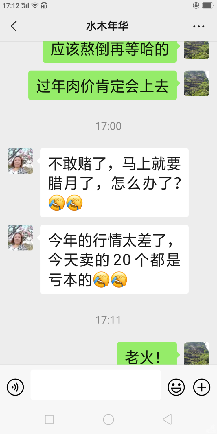 一个偶然的机会,认识他们夫妻俩,并成了好朋友。夫妻俩都是勤劳务实的赚钱能手,至于为人处世,可以用四字形容:一个安逸。大家还记得上前年那个持续上扬的肉价吧,就是因为看准了市场,夫妻俩于是用尽多年奋力打拼的积蓄,并借了些货款,准备兴办一个规模不小的养猪厂。经过不分日夜的辛勤劳作,猪场是很快建起来了;随之,猪也养起来了。可是,等猪快要出栏的时候,猪价却下迭了。镇雄有句俗话不知大家有没有听说过?叫穷人要发狠,老天都不肯!这个呢,应该是叫勤快人要赚钱,市场又不行才对。没办法,只能接受亏本的现实。据说,仅前年就亏了四五十万。认了吧,只好又把希望寄于去年。可是,去年的生猪行情仍然不行,还是只有忍泪亏本甩卖。于是,又把希望寄于今年,心想,物极必反,可是,未曾料,受大环境影响,今年的行情比去年更差。唉,做生意或投资,最关键是要看准行情。但是,市场行情风云变幻,谁又能保证只赚不赔呢!而且,做生意本来就是有赔有赚,从来就没有常胜将军。听说,这个朋友的猪场里现在还存栏大小生猪共数百头,肥猪,架子猪,母猪,仔猪都有。马上过年了,有需要的朋友可以联系购买,价格美丽。电话:15198546326;15012291359;愿我的朋友早日走出困境和低谷,同时,也提前祝大家新年快乐!