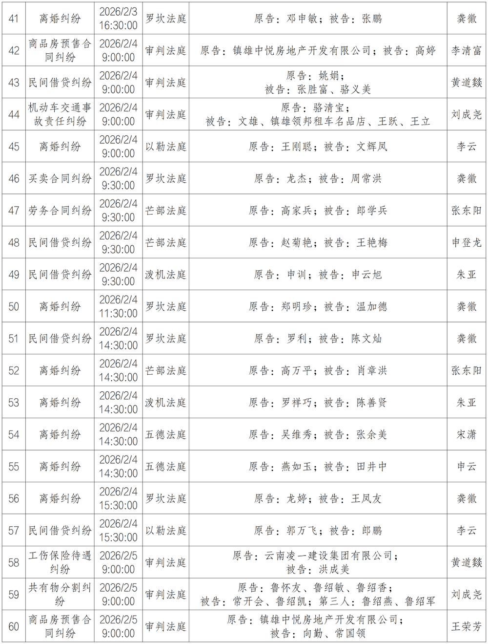 原标题:镇雄县人民法院开庭排期公告(2月1日-2月6日)