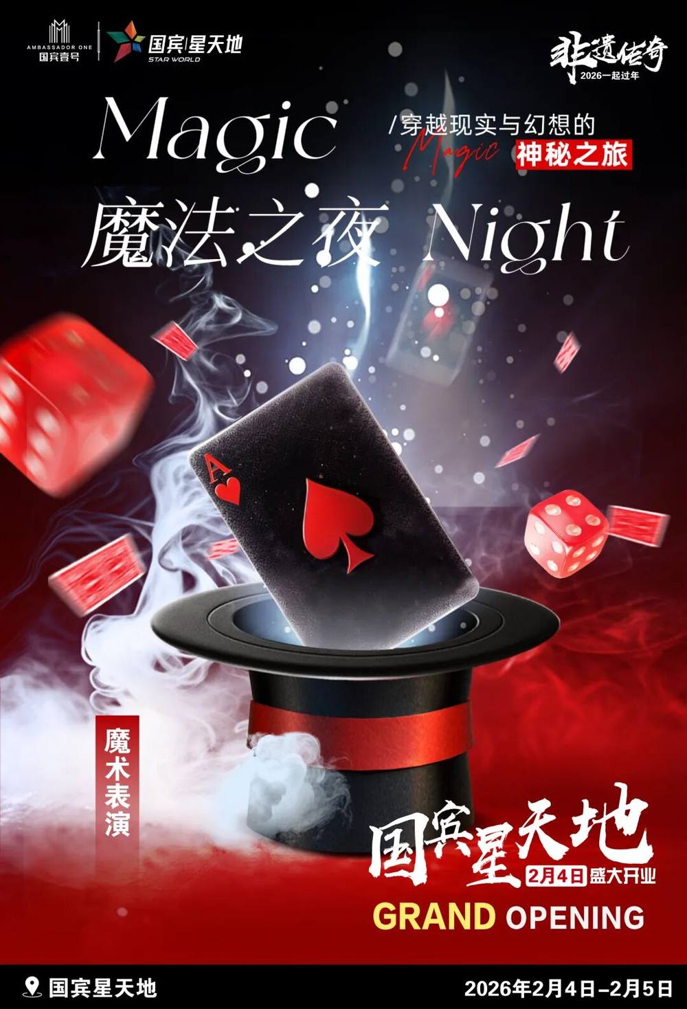 ⭐亮点:见证奇迹的时刻,眼见未必为实!近景魔术的精妙、奇幻大变样的震撼,全程高能不断,带你揭秘不可思议的魔幻瞬间。