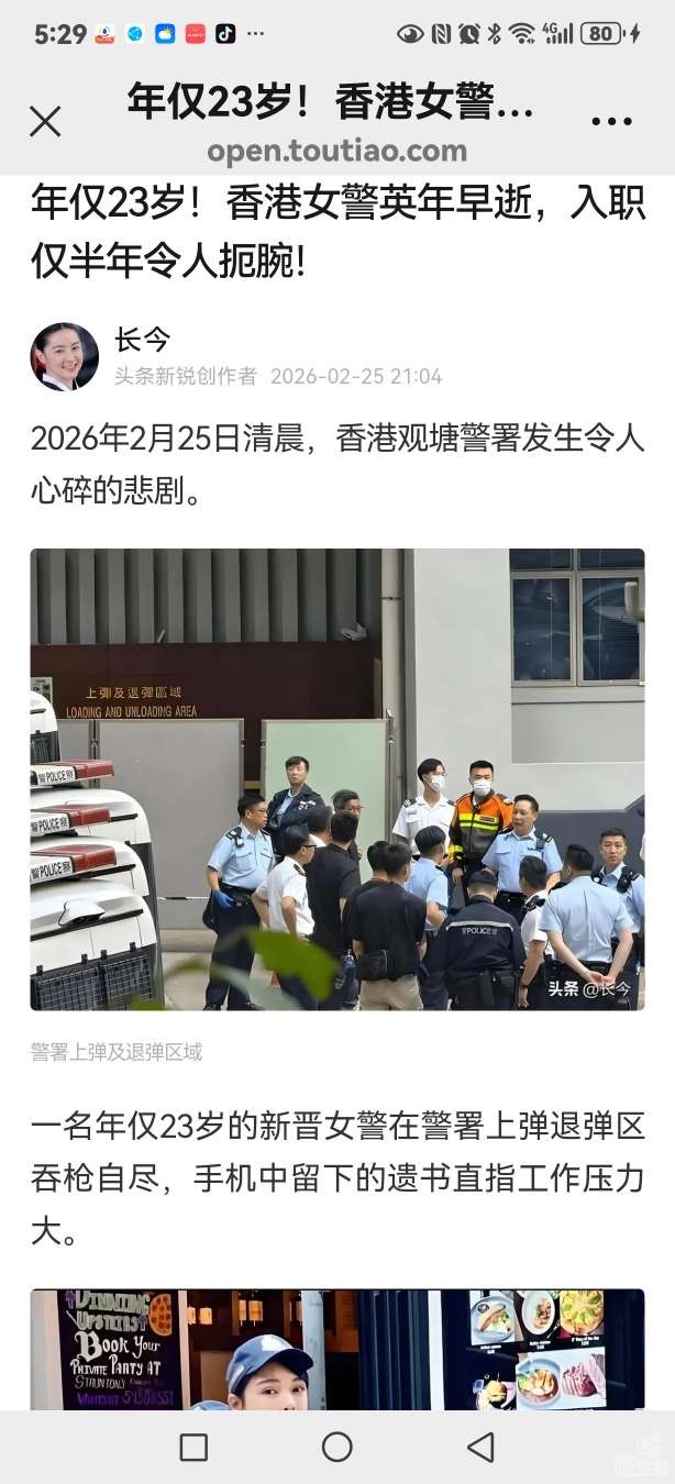 一香港女警自杀身亡手机内所存遗书称工作压力过大!