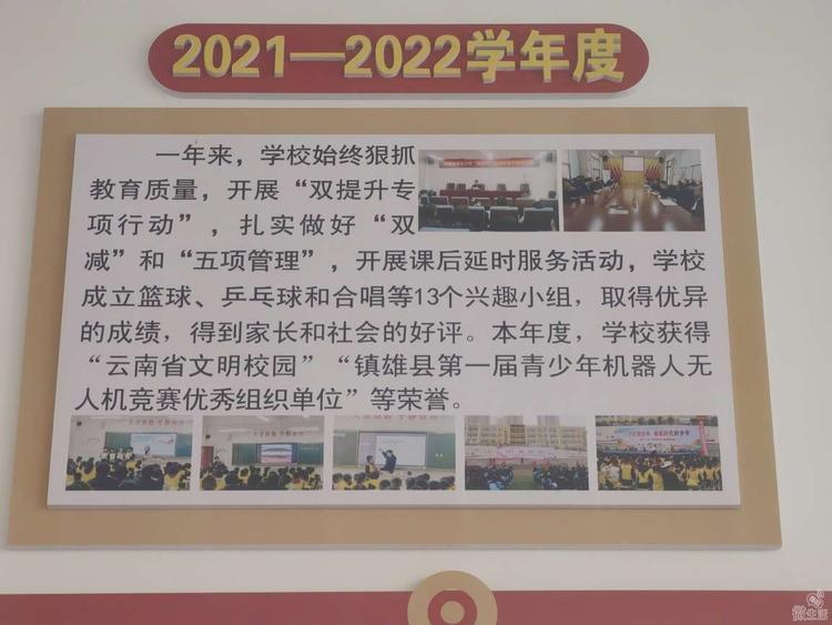 学校自办学以来,以党建工作为引领,发挥党员先锋模范作用,不断深化教学科研工作,每学期通过示范课、观摩课、随堂课,校长带头,分组进行,开展丰富的教研活动。学校高度重视安全工作,每学期至少开展四次安全隐患排查,建立完善各项安全制度,不断开展交通安全、防火、防煤气中毒等教育。在学校党支部的带领下,以少先队为活动阵地,学校开展丰富的德育活动,如“为妈妈洗一次脚”、“做一次家务”、“做一个文明镇雄人”、“经典诵读”比赛等德育活动。常态化开展大课间、体育、劳动、美术等活动,严格落实“双减”和“五项管理”政策,实施课后延时服务,让每一位学生健康快乐的成长。