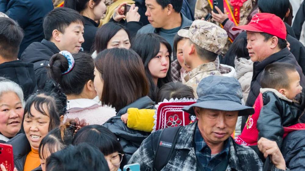 挤满了前来送别的家属和群众