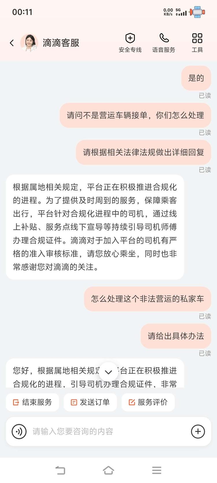 滴滴公司不管是客服还是回复的所谓专员都是同一套说辞,它们会引导司机办证,至于什么时候办证,乘客的权益没有得到保证是它们无法回答的,就是反复的和你扯,至于该负的责任和义务是只字不提!
