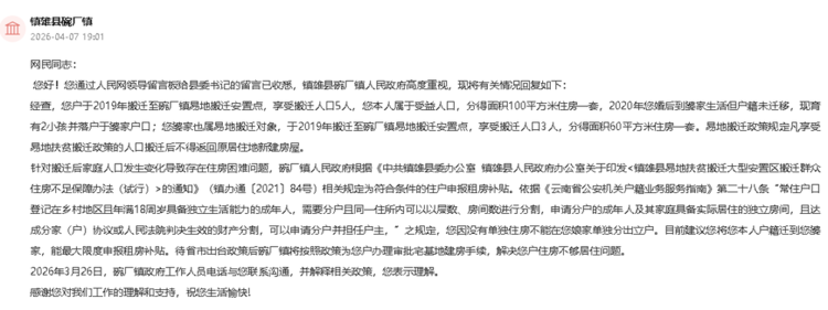 镇雄县碗厂镇官方回复来了