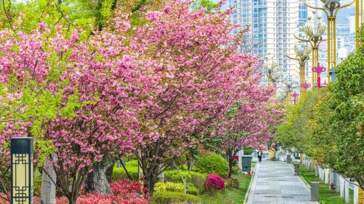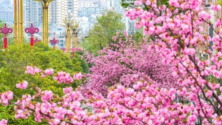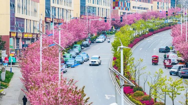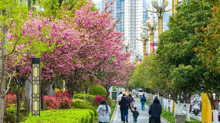 在大街小巷绘就盛春的粉色画卷