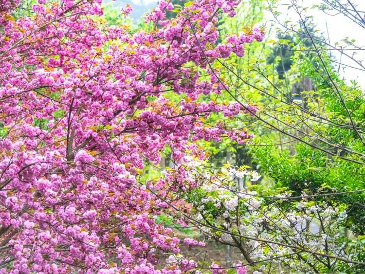 晚樱与梨花交织盛放