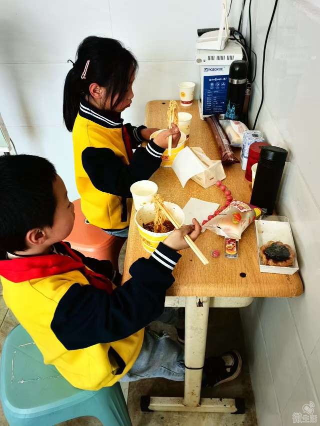 考虑再三,赵叔当即决定:由自己照顾姐弟俩午餐,不让老人来回奔波。他自掏腰包,带着孩子去买吃食。姐弟俩平时很少吃零食,见到琳琅满目的零食便爱不释手,赵叔耐心劝导,告诉他们要吃饱主食才有力气上课,还特意拨通奶奶电话,一起劝说孩子。最后,他为孩子们买了热气腾腾的泡面、面包和零食,带回值班室,倒上温水,看着他们吃饱喝足,才叮嘱他们安心回教室学习,不在教室追逐打闹。