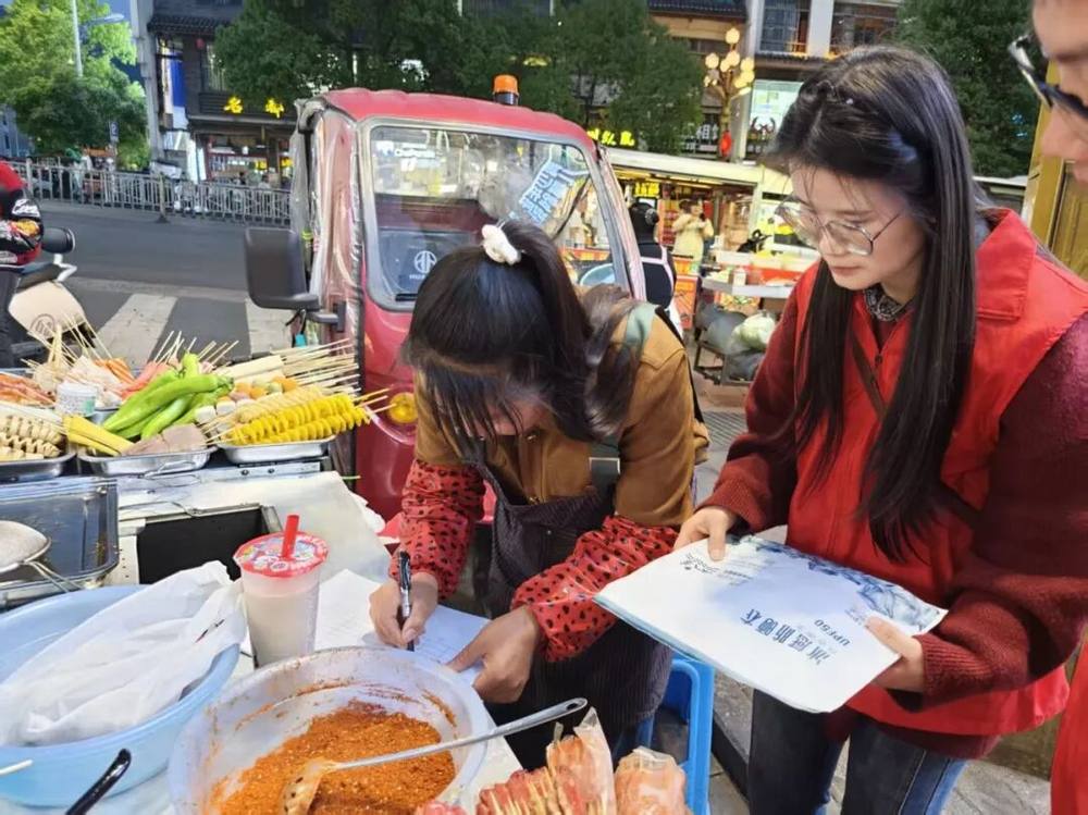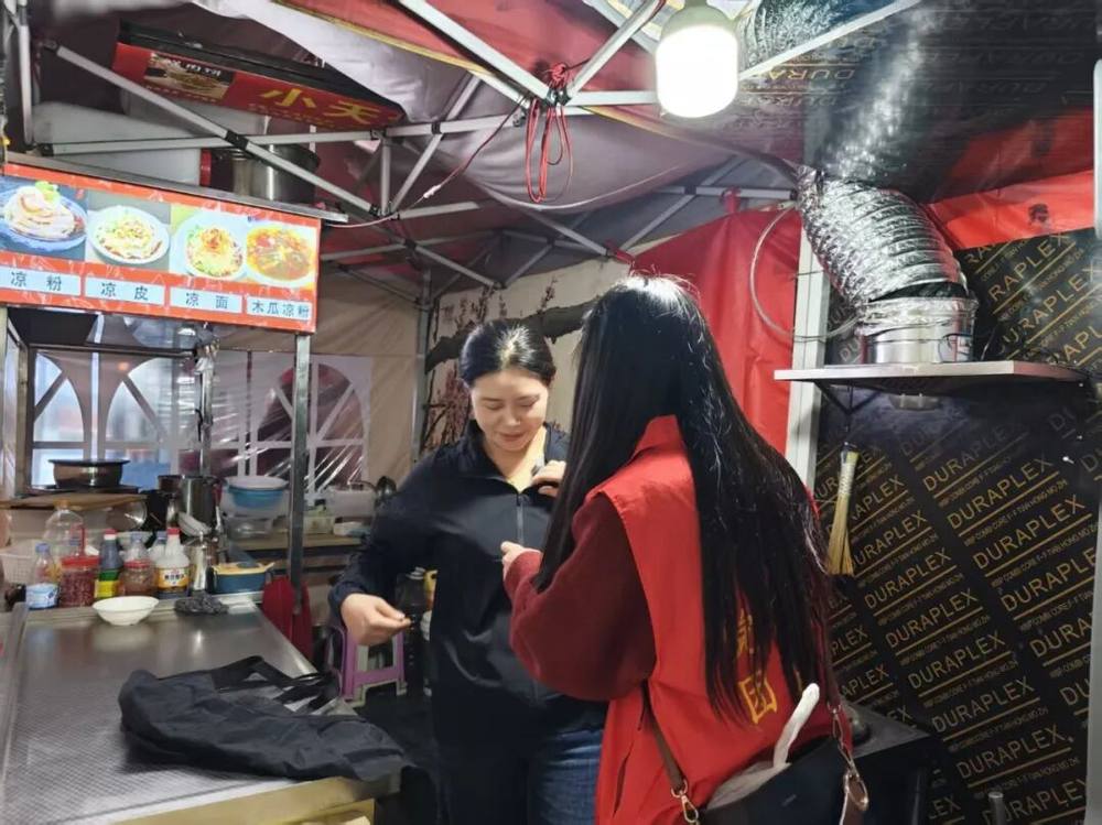 座谈会结束后,青年志愿者走上街头,深入沿街商铺、流动摊位,为户外摆摊创业青年送上慰问品,与他们亲切交流,详细了解经营情况、实际困难与发展需求,用实际行动关心关爱新业态、自主创业青年,让青年朋友们真切感受到温暖与支持。
